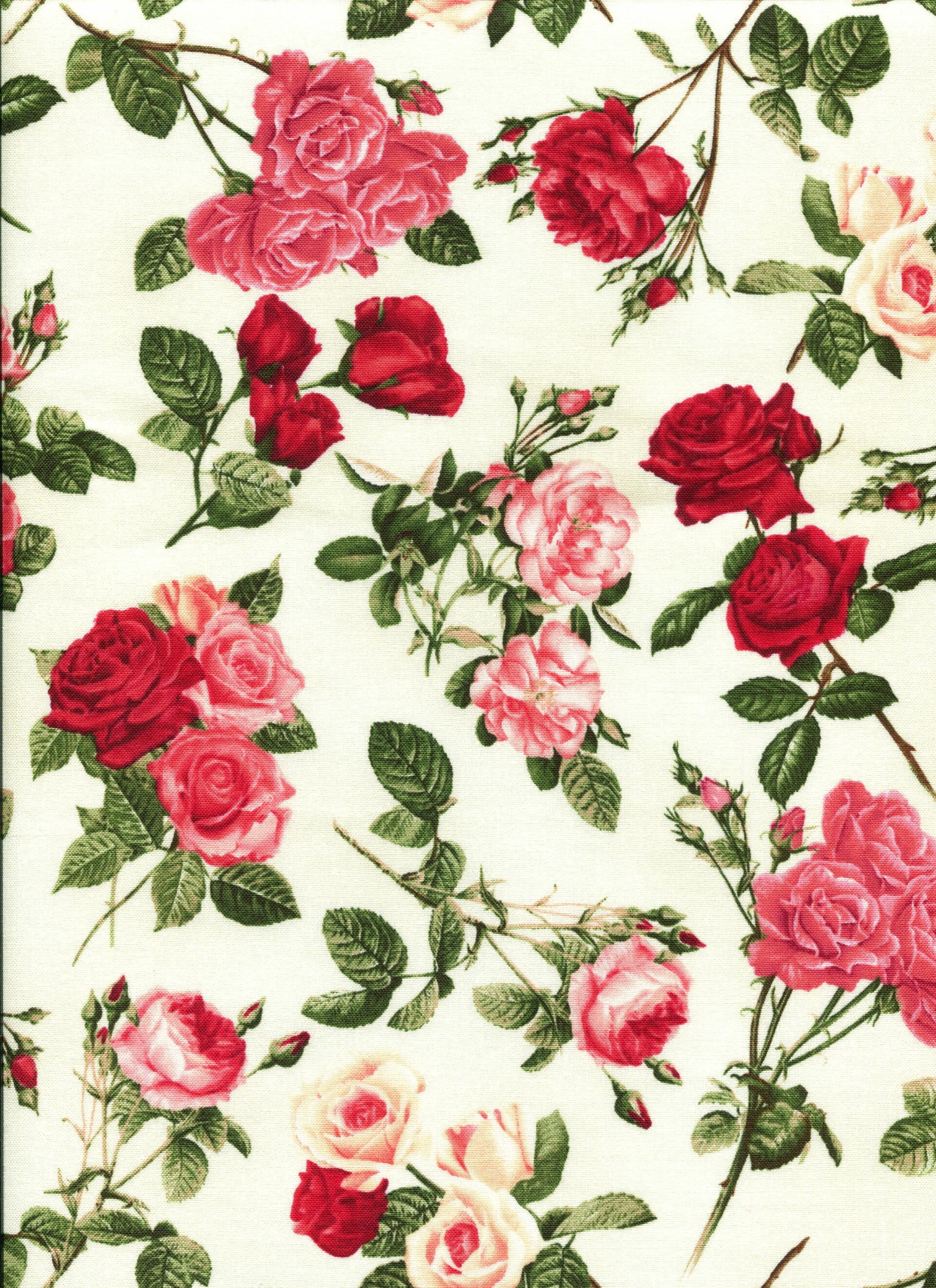 Flowers Timeless Treasures roses A 10 on white Select 45x55 cm or per 10 cm (min 30 cm)