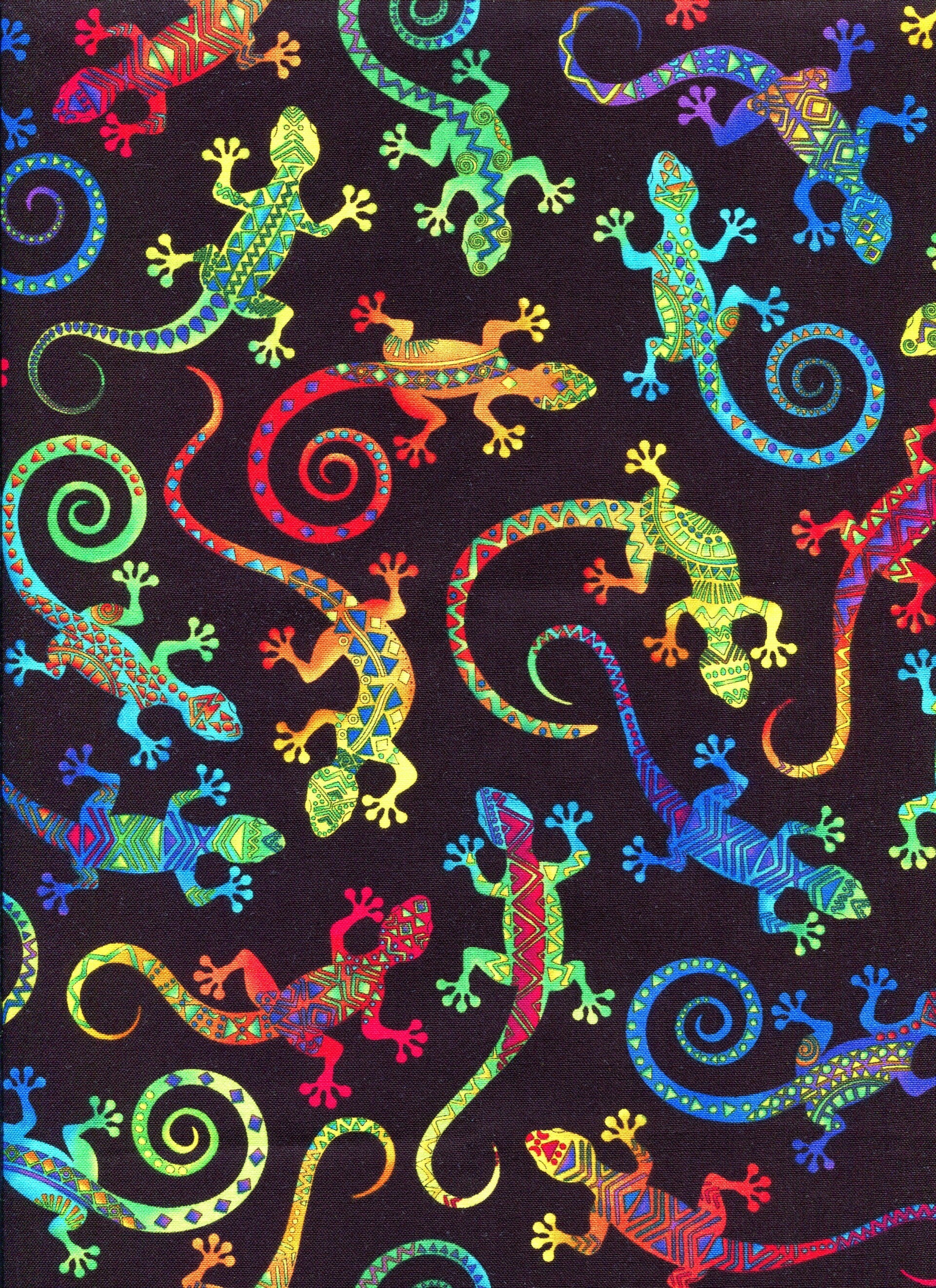 Cocopeli Timeless Treasures geckos on black Select 45x55 cm or per 10 cm (min 30 cm)